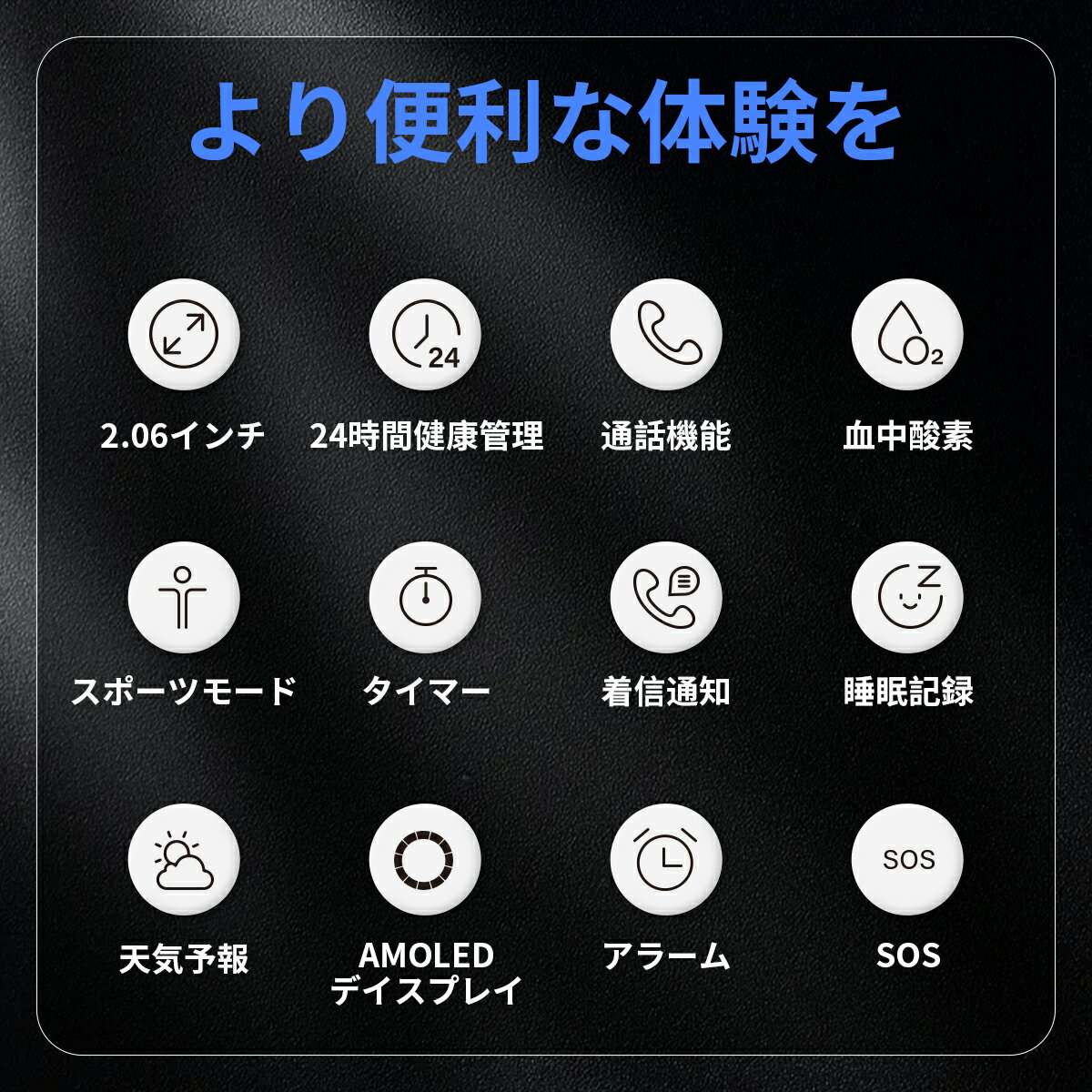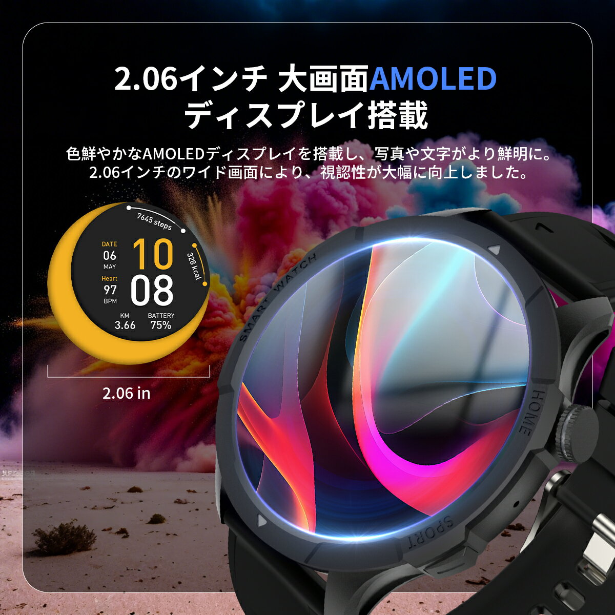 「15%OFFクーポン対象」 スマートウォッチ 通話機能 Bluetooth5.4 メンズ レディース 2.06インチ 丸型 皮膚温変動検知 心拍計 歩数計 着信通知 IP67防水 運動モード 睡眠検測 Line対応 腕時計 iphone/android対応 TELEC認証取得済 クリスマスギフト