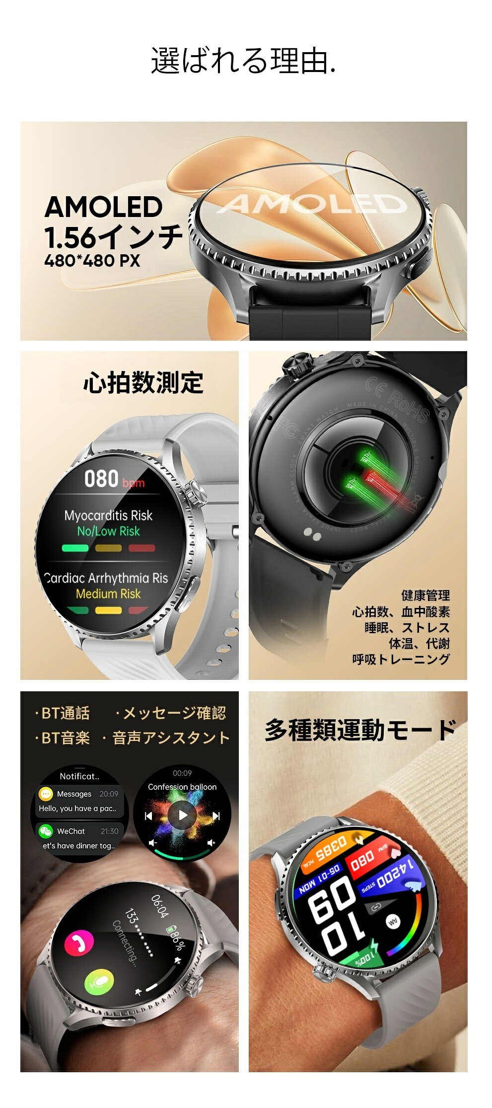 「リニューアル 半額セールで8,999円 即納」スマートウォッチ 血圧 心拍数 血 糖値 日本製 センサー レディース 1.56インチ 血中酸素 睡眠 IP67防水 iPhone/Android対応 日本語対応 プレゼント 24時間体温測定 音楽プレーヤー 高精度心拍数 睡眠検測 呼吸率 日本語説明書