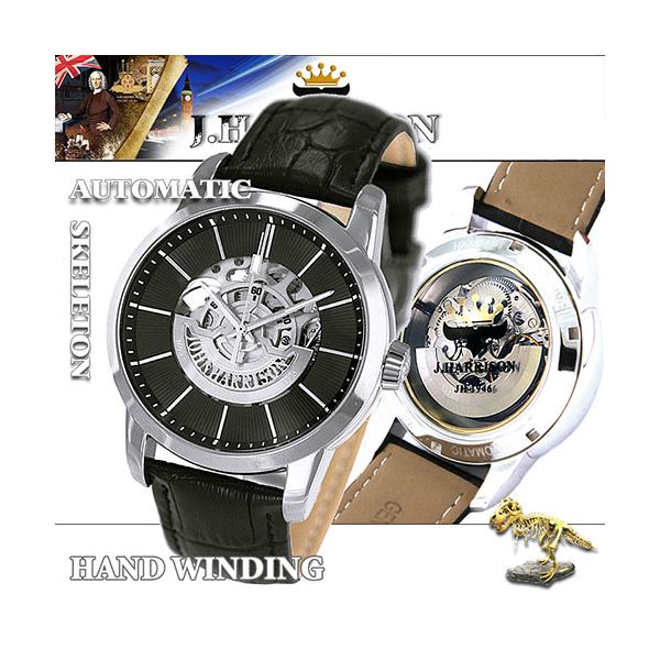 【クーポン配布中】J.HARRISON フロントローター 自動巻き スケルトン時計 シルバー JH-1946SB