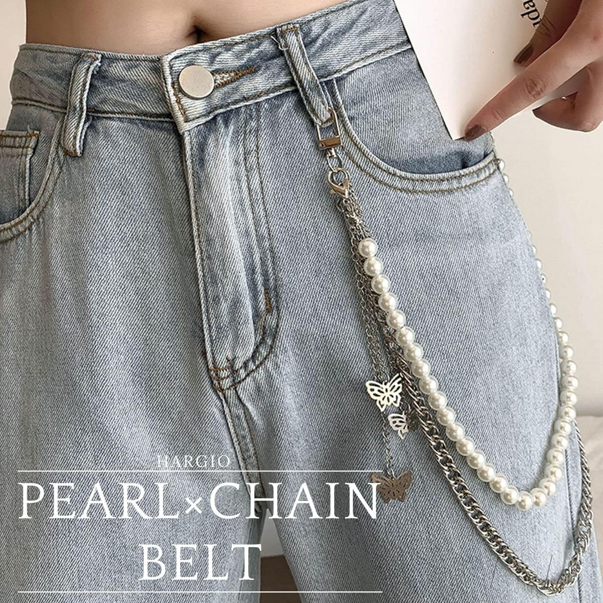 [ハルジオ] ウォレットチェーン アクセント ベルトレディース パール ズボンチェーン パンツチェーン 財布 チェーン シルバー キーチェーン ズボンにつけるチェーン 可愛い オシャレ