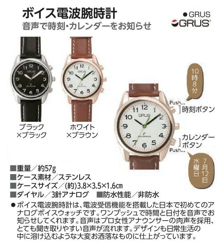 日本初!アナログボイスウォッチ 【ボイス電波腕時計】 GRUS 音声 腕時計