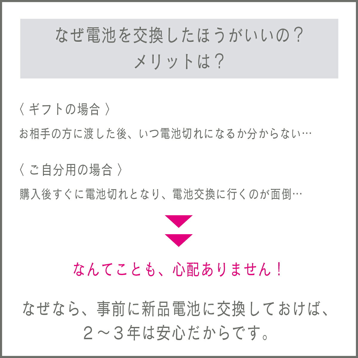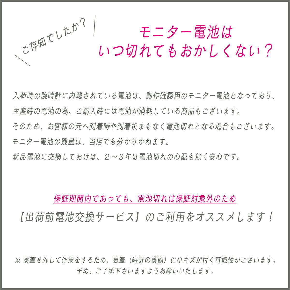 【同時購入用】【出荷前/電池交換サービス】新品電池に交換して出荷します!2〜3年は電池切れの心配なし!【※ソーラー式・自動巻き腕時計は対象外】